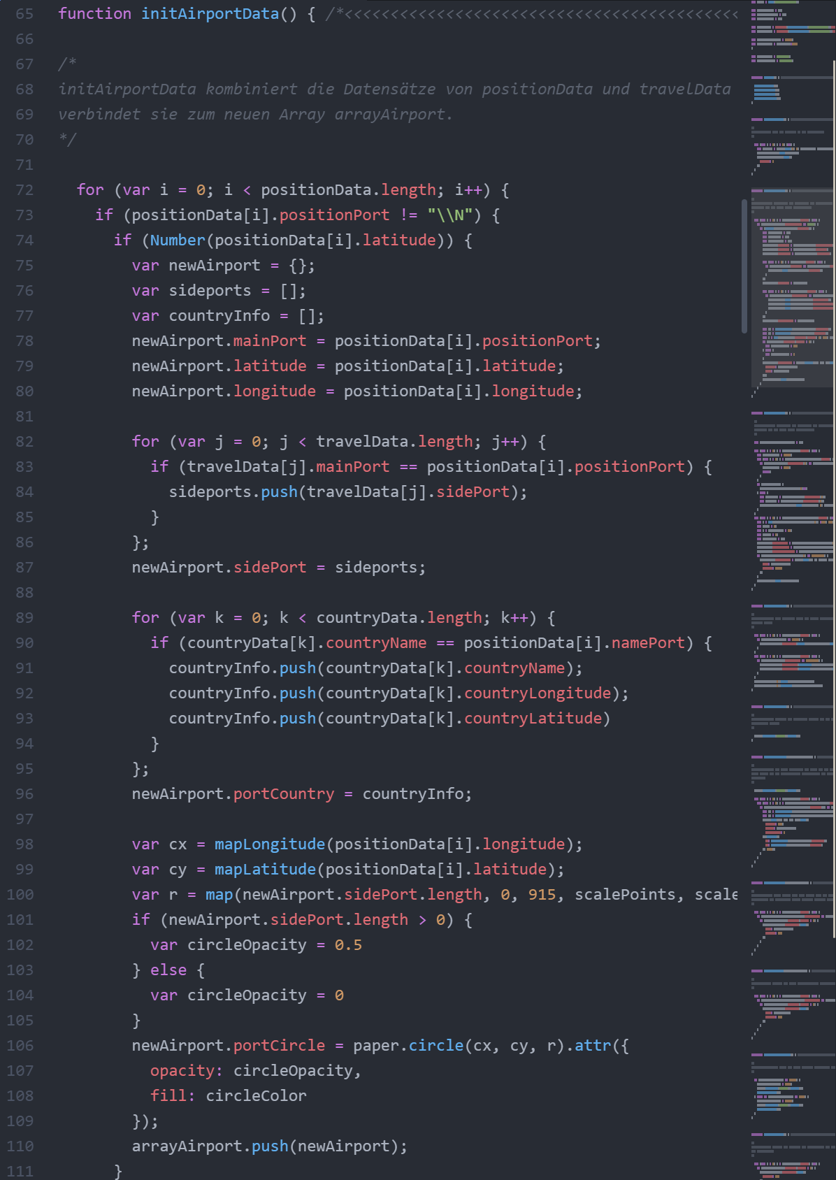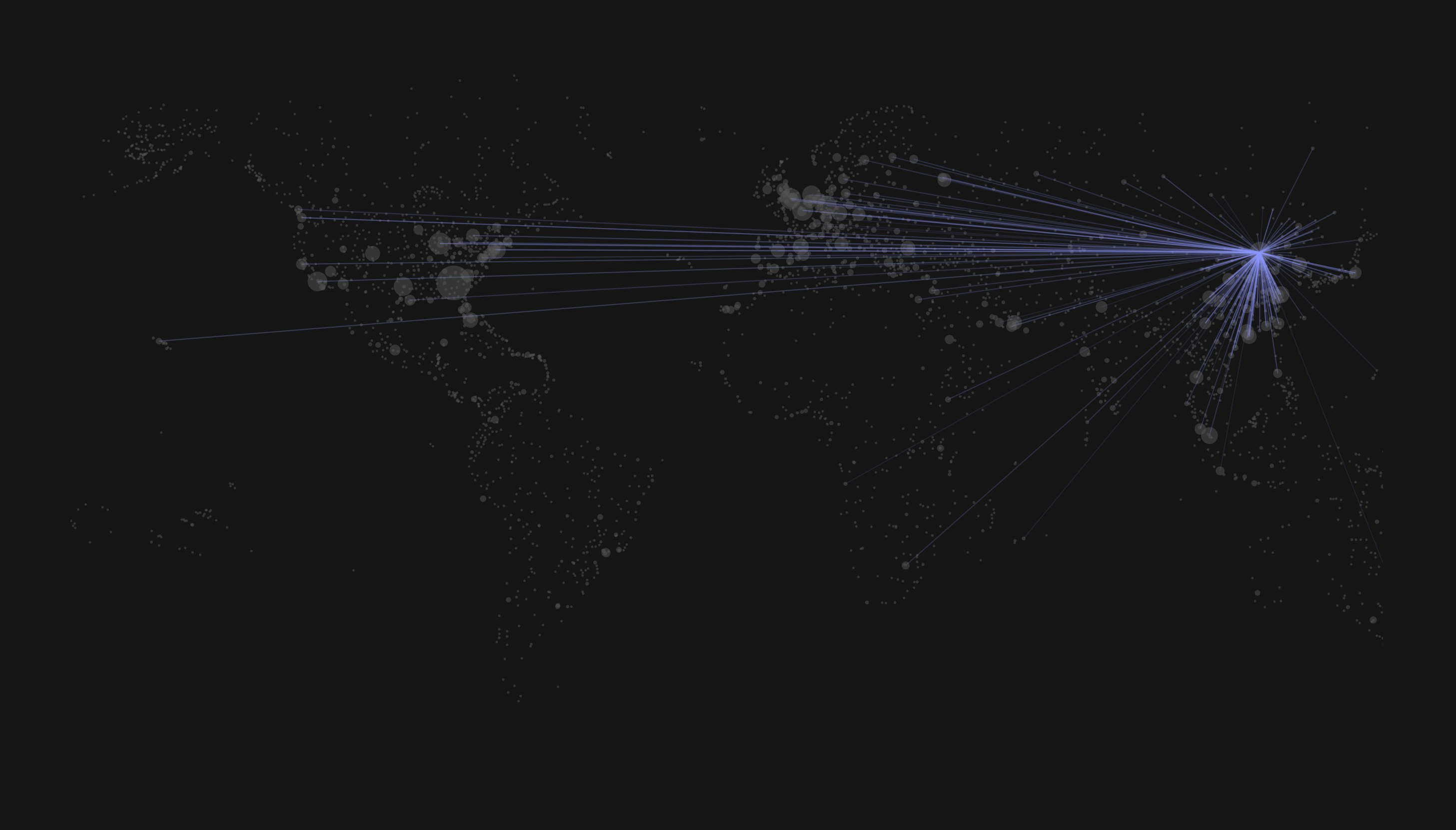 Datair is a data visualization that prepares and presents information about listed airports worldwide and their destinations noted in the system. The data, prepared with JavaScript and displayed in the form of circles and lines, can be selected interactively and read out visually.