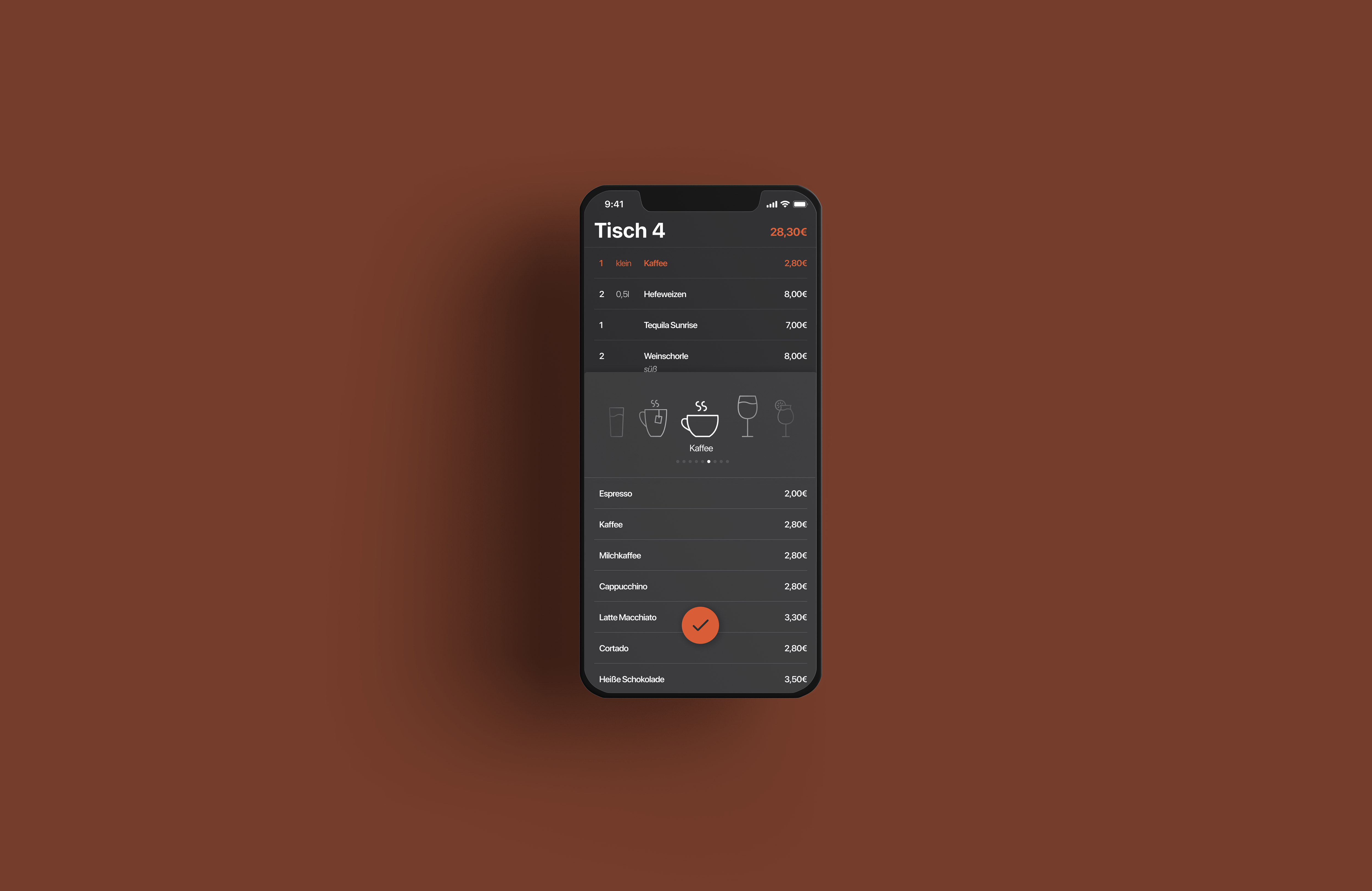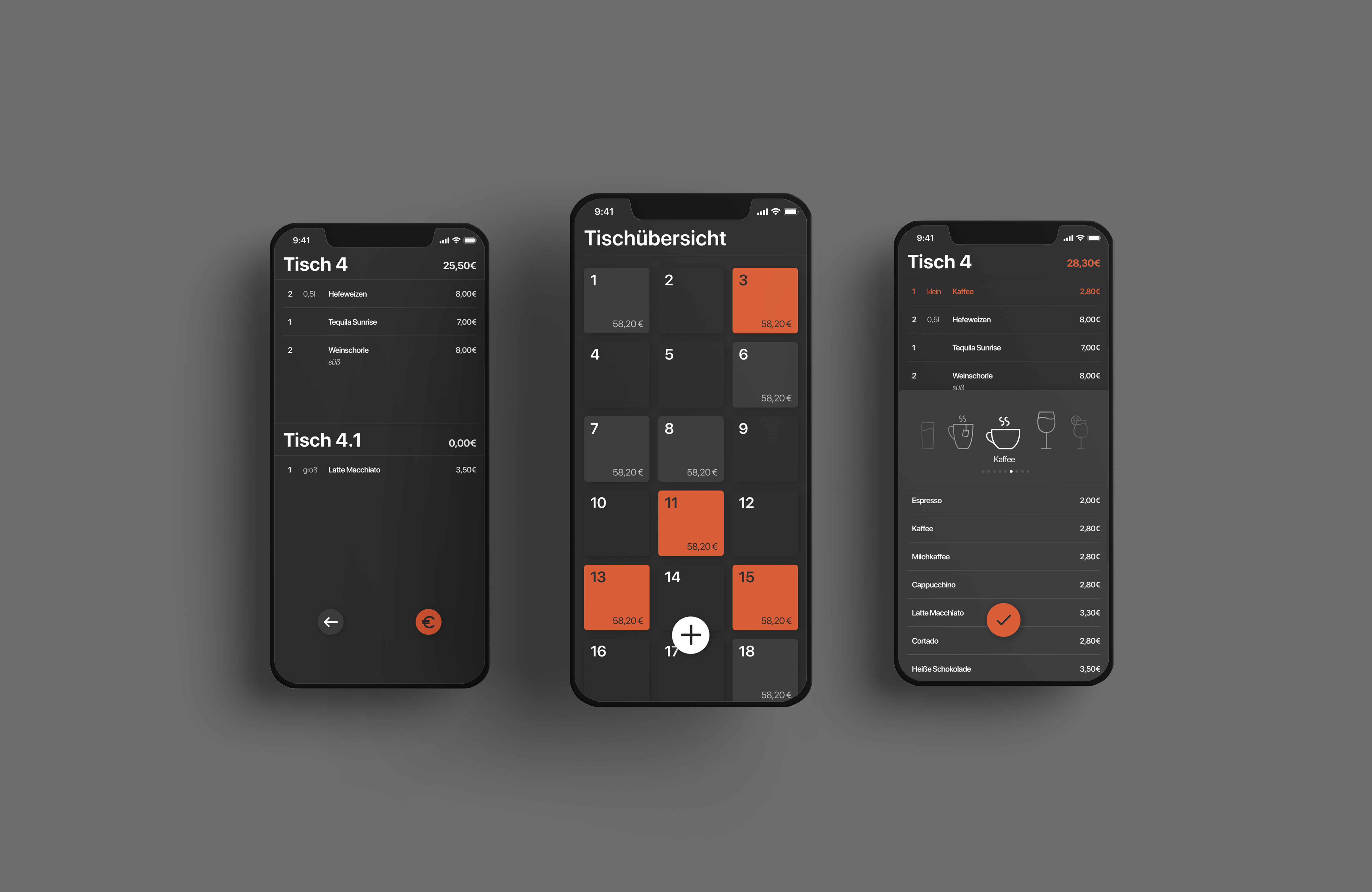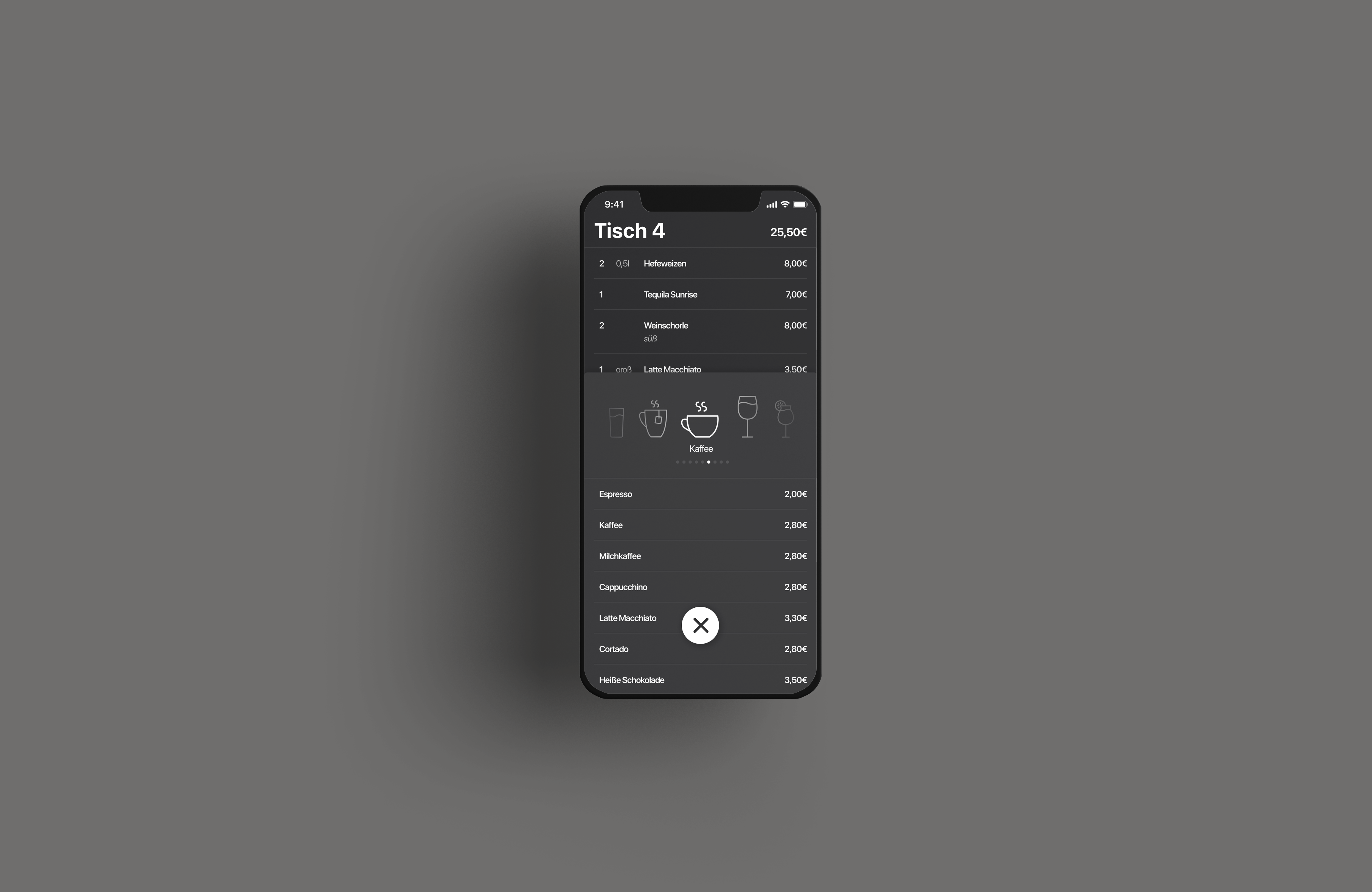 waitr is a POS system that simplifies and fastens the workflow of service staff in the catering industry. Through an intelligent division of the screens, the number of required tabs is reduced to a minimum and allows the waiters to place the order almost immediately. All areas to be handled are located in the lower half of the screen and can therefore be reached from both sides by all users with a single hand. The clear and dark layout with the highlighted changes and information allows the use in low light conditions.